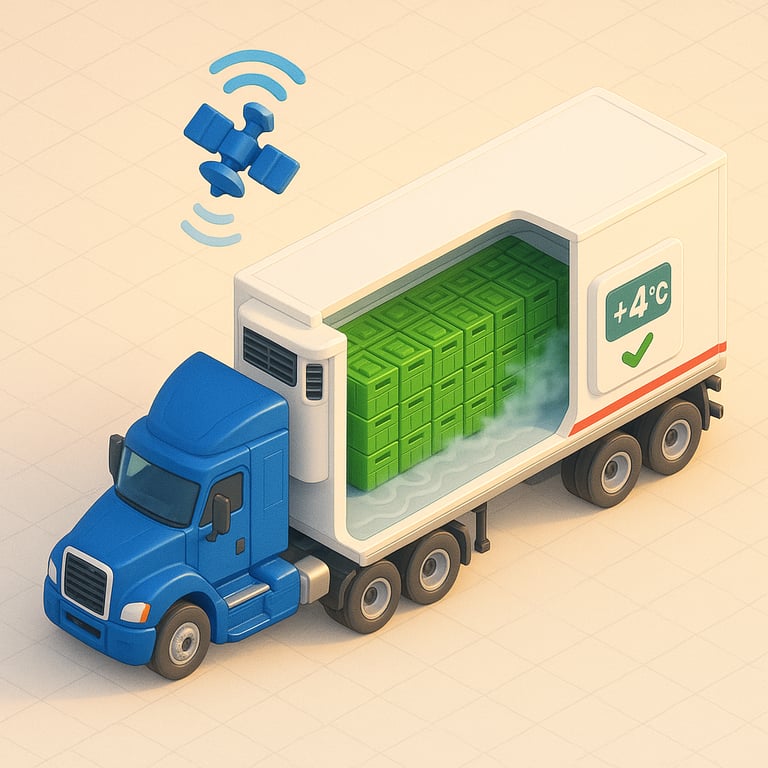 Flota refrigerada certificada y protocolos de temperatura (-20 °C a +25 °C) para productos perecederos.